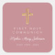 Elegant Pink Religious Cross Girl First Communion Square Sticker