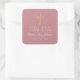 Elegant Pink Religious Cross Girl First Communion Square Sticker.