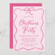 Elegant Pink Ribbon Bow Christmas Party Invitation