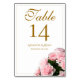 Elegant Pink Rose Bouquet Floral Wedding Table Number