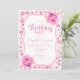 Elegant Pink Rose Floral White Birthday Party Invitation