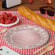Elegant metallic pink/rose gold 70th birthday party paper plate designed with pearls and a tufted look. Because all text is customisable, these paper plates can be customised for girls or women of any age.