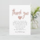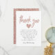 Elegant and glam baby shower thank you card featuring a faux rose gold glitter typography text that says "thank you" with a heart under it. There is a default message in place that's editable. Modern pink design for a baby girl shower.