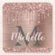 Elegant Pink Rose Gold Glitter Drips Monogram Square Paper Coaster