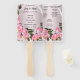 Wedding Program Fans are a popular choice for summer ceremonies. It's a stylish way to keep wedding guest cool and provide the important details as you say “I do”. Holding your event outside? It comes as no surprise that people will be in need of something to keep them cool. That's why a personalised wedding program hand fan is the perfect gift to give away at your wedding. Personalise and create by adding, and changing the text in the fields provided. You can change font style, size, and colour, as well as paper type.