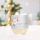 Elegant Pink Roses and Silver Wedding Stemless Wine Glass