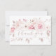 Thank your wedding guests in style with this elegant floral custom thank you flat card. This chic design template features the words "Thank You" in modern script framed with hand painted blush pink roses and greenery on a white background. The back of the card has a custom thank you message and signature accented by a bouquet of roses. Designed by Susan Coffey.