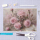 A romantic design of dried pink roses laid on parchment with an elegant old world cursive font, decoupage tissue paper.