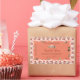 Make a lasting impression with this modern and elegant product label design featuring a pretty frame with pink roses and brown rose leaves on a salmon background.