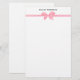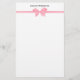 Elegant Pink Satin Bow on White Stationery