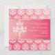 Gorgeous white damask with pink and purple gradient pattern on the background, featuring your photo. Illustrated by a silk ribbon on the front and a cute white chandelier on the back. Fancy, elegant invitation for sweet sixteen parties, birthday parties or quinceaneras. **silver and silk ribbon are only images, do not sparkle, do not reflect**