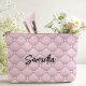 Elegant pink silver faux glitter drips monogrammed accessory pouch