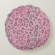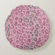 Elegant Pink Silver Glitter Leopard on Rose Gold Round Cushion