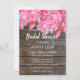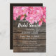Elegant pink summer flower rustic wooden background bridal-shower, wooden rustic background with bright summer pink flowers on top border, Matching items in store