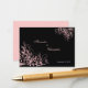 Pink flower swirls on black background. Elegant, fully customisable RSVP minicard.
