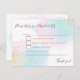 Elegant Pink Teal with Gold Confetti Wedding RSVP. Perfect colours for outdoor summer weddings, imagine balmy days and blue skies, and this elegant design could do nicely! The background is a soft pastel blend of pink and teal, adorned with splashes of gold confetti. The brown typography can be easily personalised and the colour changed if you wish via the click to customise further option. The pretty pastel watercolors continue onto the back of the card. Your guests have to just write their names, tick the relevant boxes and pop the postcard back in the post to you with your address details already there for their convenience..