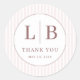 This Classic Round Sticker features a minimalist design with alternating light pink and white vertical stripes in the background. At its center, elegant serif typography spells out "THANK YOU" in soft brown letters, creating a warm and sincere tone. The layout is clean and balanced, emphasizing clarity and sophistication without any additional embellishments. Perfect for expressing gratitude, this sticker can be used to add a personal touch to gifts or thank-you notes.