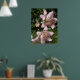 A beautiful capture of two soft pink tiger lilies in full bloom. Their shiny green foliage surrounds them.