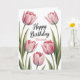 Elegant Pink Tulip Floral Birthday Card