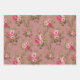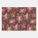 Elegant Pink Vintage Roses on Maroon/Buff/Old Rose Wrapping Paper Sheet