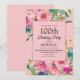 Elegant and colourful pink watercolor floral with gold glitter 100th birthday party invitation for women. Contact the designer for help with customisation or to request matching or coordinating products. The text on this card is completely customisable and can be designed for a party celebrating anyone of any age.