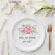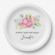 Birthday paper plates with a beautiful and elegant watercolor created floral bouquet. Pink garden flowers surrounded by light green foliage.