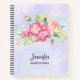 Personalised spiral notebook with a beautiful and elegant watercolor created floral bouquet. Pink garden flowers surrounded by light green foliage.