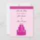 A classy design featuring an elegant pink wedding cake with flowers and ribbons on top.  A soft pink background with a pretty pink accent along the top. Customise with names and wedding date as desired.