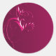 An elegant round envelope seal, this design features an ornate flourish decoration set against a deep crimson pink background.