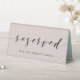 This table tent sign is the perfect size for our tables and easy to read. I also like the material it is made with and no worries about it falling or sliding. Just perfect! Everything about this card is perfect. I like that it says what we want on the front and on the back we were able to personalize a message for our guests.