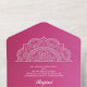 These "Elegant pink and white Indian Wedding All in One Invitations" are designed with an easy to tear off perforated RSVP postcard. Just simply fold each card into the outlined shape, and then seal and send - no envelope needed for shipping.
