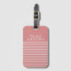 Elegant Pink White Striped Monogram Script Luggage Tag