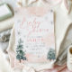 Elegant pink and blush baby shower invitation with snowflakes pine trees, and a boho design.