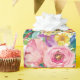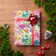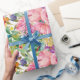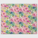 Elegant, feminine, and colourful pink, blue, and yellow watercolor floral gift wrapping paper.