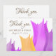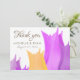Elegant Pink Yellow Tulip Flower Floral Wedding Thank You card with a thank you note on the backside. A personalizable and elegant wedding thank you card with abstract tulips in pink, yellow and purple colours. The text is a trendy golden script - personalise with your names, wedding date and thank you message. Great for a flower wedding.