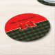 Elegant Plaid and Jewelled Bow with Name Round Paper Coaster