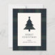 Modern Christmas card featuring a timeless design with a Christmas tree with a muted navy blue and green plaid pattern along with the greeting, "Merry Christmas". Use the template to add your personalized message.