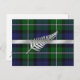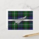 Elegant wedding save the date post card done in the traditional Forbes green and blue tartan plaid. Lovely graphics of a silver tone ribbon and fern decorates the front of the plaid card. All text, on the back of the card, is fully customisable to read what you want.
