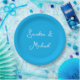 Elegant Plain Azure Blue Personalised Custom Paper Plate