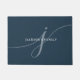 Elegant Plain Navy Blue White Script Monogram Doormat