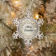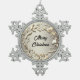 This truly elegant and glamourous platinum (or dark silver?) coloured Christmas ornament will make a striking statement on your tree this holiday season. The design features a metallic-style Christmas wreath in pale gold surrounding the traditional 'Merry Christmas' greeting which can also be personalised with a name if you prefer. This delightful snowflake-shaped ornament will definitely be an eye-catcher and really stand out amongst the other decorations this year.