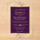 Invite your loved ones to share in your joy on your wedding day with these gorgeous acrylic invitations. The stylish purple and gold design features your names prominently displayed in gold letters while the introduction and other notes feature fancy script calligraphy with swashes on the ends of the letters. The text is displayed on a deep plum purple or eggplant colored background inside of a golden frame. The outside border of the invite is transparent acrylic with ornate golden faux foil decorations in the corners. Elegant, classy, sophisticated and beautiful, these wedding invitations are sure to leave a lasting impression.