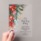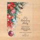 Elegant ACRYLIC Christmas holiday party invitations feature poinsettias, pine branches, Christmas tree ornaments with your details in chic lettering, perfect for your festive business or friends and family holiday gathering.