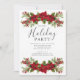 Modern elegance holiday party featuring a beautiful poinsettia and holly berry frame set on a white background.