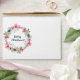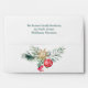 A festive finishing touch for holiday mailings, this envelope design features “Merry Christmas” inside a watercolor poinsettia and holly wreath. Personalise with your return address or family name for a coordinated look with your matching cards, invites, or stickers. Perfect for making even your envelopes feel like part of the celebration.
