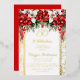Elegant and classy dark red and white floral poinsettias with seasonal pine greenery on a splatter frame "50 and Fabulous" Birthday Party design by Holiday Hearts Designs. All text and non-floral accents are real gold foil. Composite design by Holiday Hearts Designs.