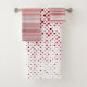 Turn your bathroom into personal oasis with a towel perfect for drying you off in style. This popular and attractive 3 piece towel set features a polka dot artwork and parallel lines graphics pattern. The big bath towel has polka dots. The hand towel and wash cloth have the parallel lines pattern, and contrast beautifully with the red palette of the bath towel. Visit my store for matching bath mats and other artwork.If you like this artwork, you can visit my home_decor_gallery store for matching/similar items.