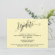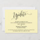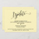 This suite's distinction is due to the elaborate, swirling script font used for accent phrases. In the event that you need to let your guests know that your wedding has been postponed, this card provides an elegant, simple option. In this piece, the calligraphy font was used to create a graphic depicting the word "Update". Use the template fields to add your personal details and make this design your own. The background can be changed to any colour you prefer. Please reach out with any special requests or for customising assistance. // 98 //