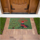Elegant practical design of beautiful labrador on green burlap doormat. This design looks beautiful in many ways and practical in the same time. A doormat design for black labrador lovers. The text Merry Christmas is red and in beautiful script. Welcome and funny labrador wearing santa hat and Christmas scarf.