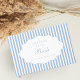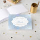 Elegant, Feminine Design – Features classic dusty blue and white vertical stripes with a modern script and serif font combination for a chic, timeless look.